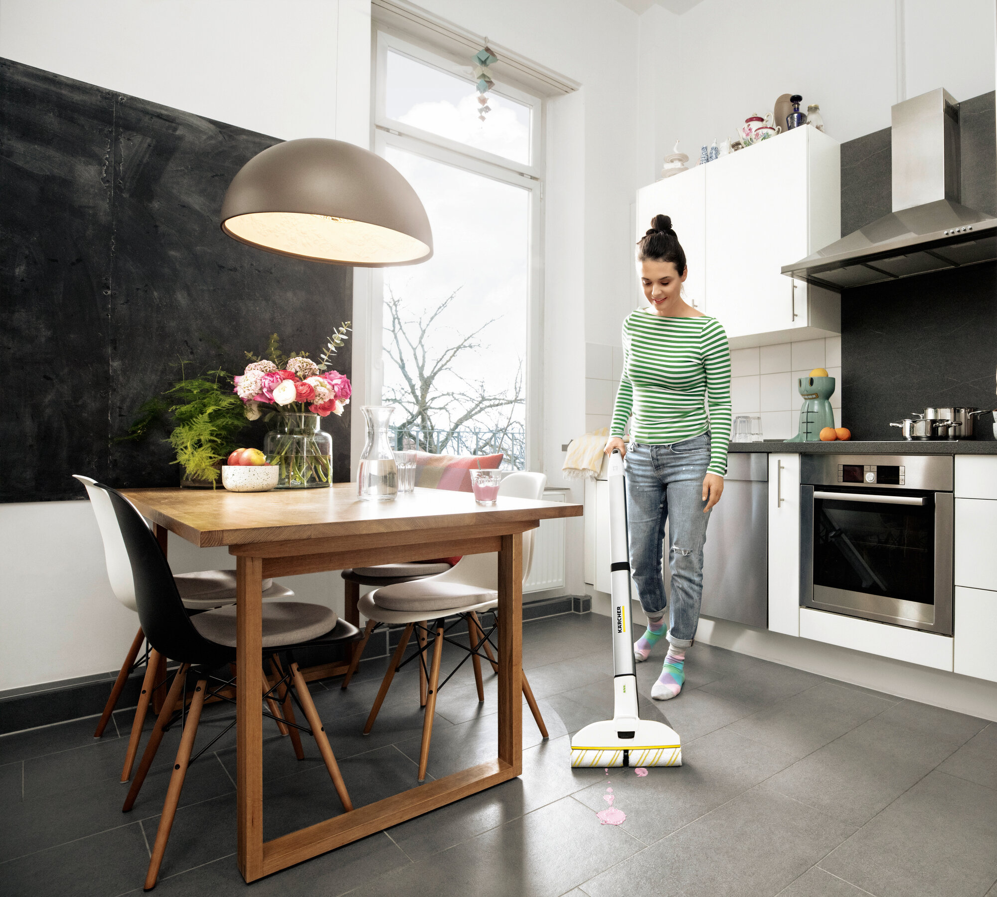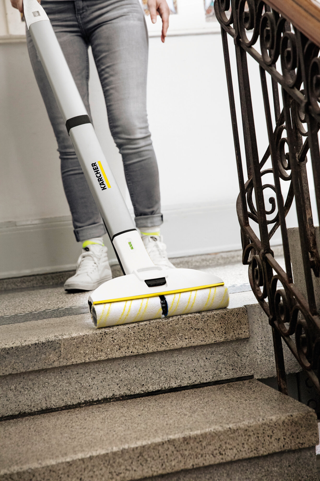Электрошвабра Karcher EWM 2 *EU 1.056-310.0, с системой 2 резервуаров, 2 роликовые щетки, парковочная станция с местом для хранения роликов