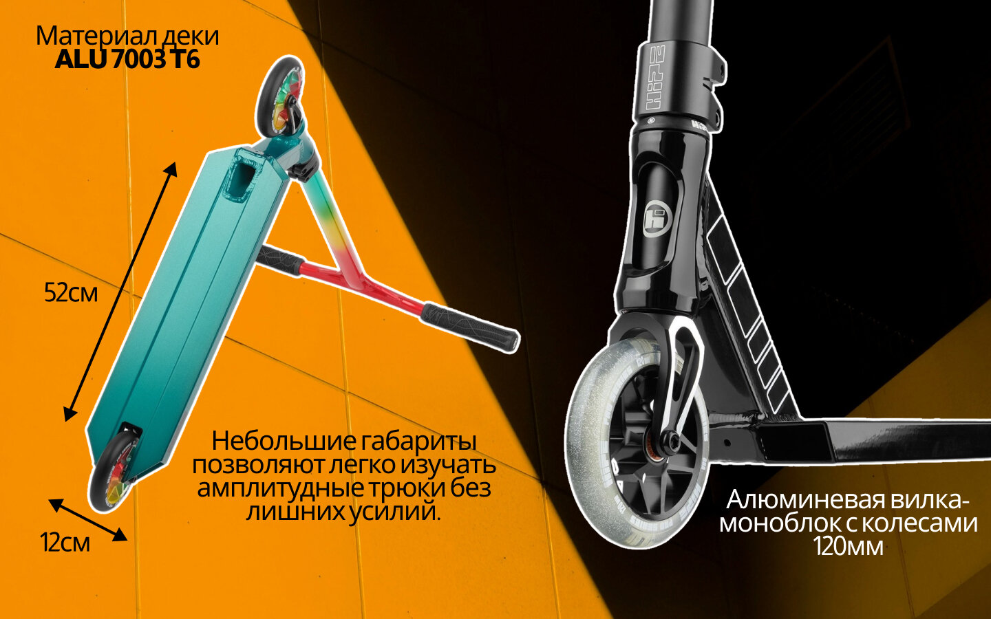 Трюковый самокат HIPE S20 120 мм чёрный