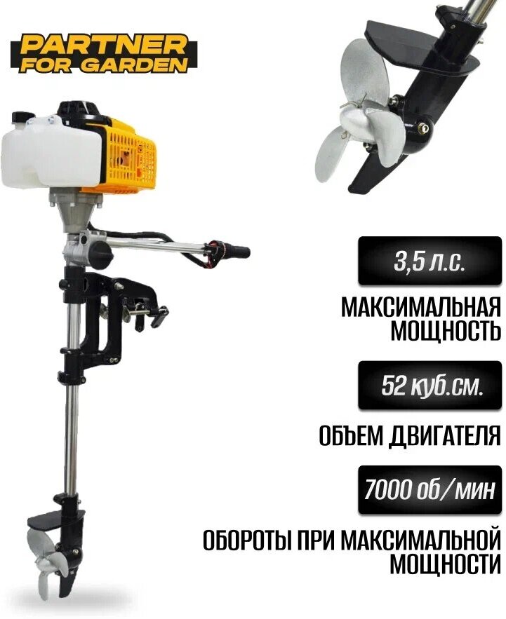 Двухтактный подвесной лодочный мотор Partner for Garden ОМ 520 ( 3,5 Лс 2.6 кВт, 52 см, 7000 об/мин, Металлический Трёхлопастной Винт, для резиновой ПВХ лодки ) интересное: