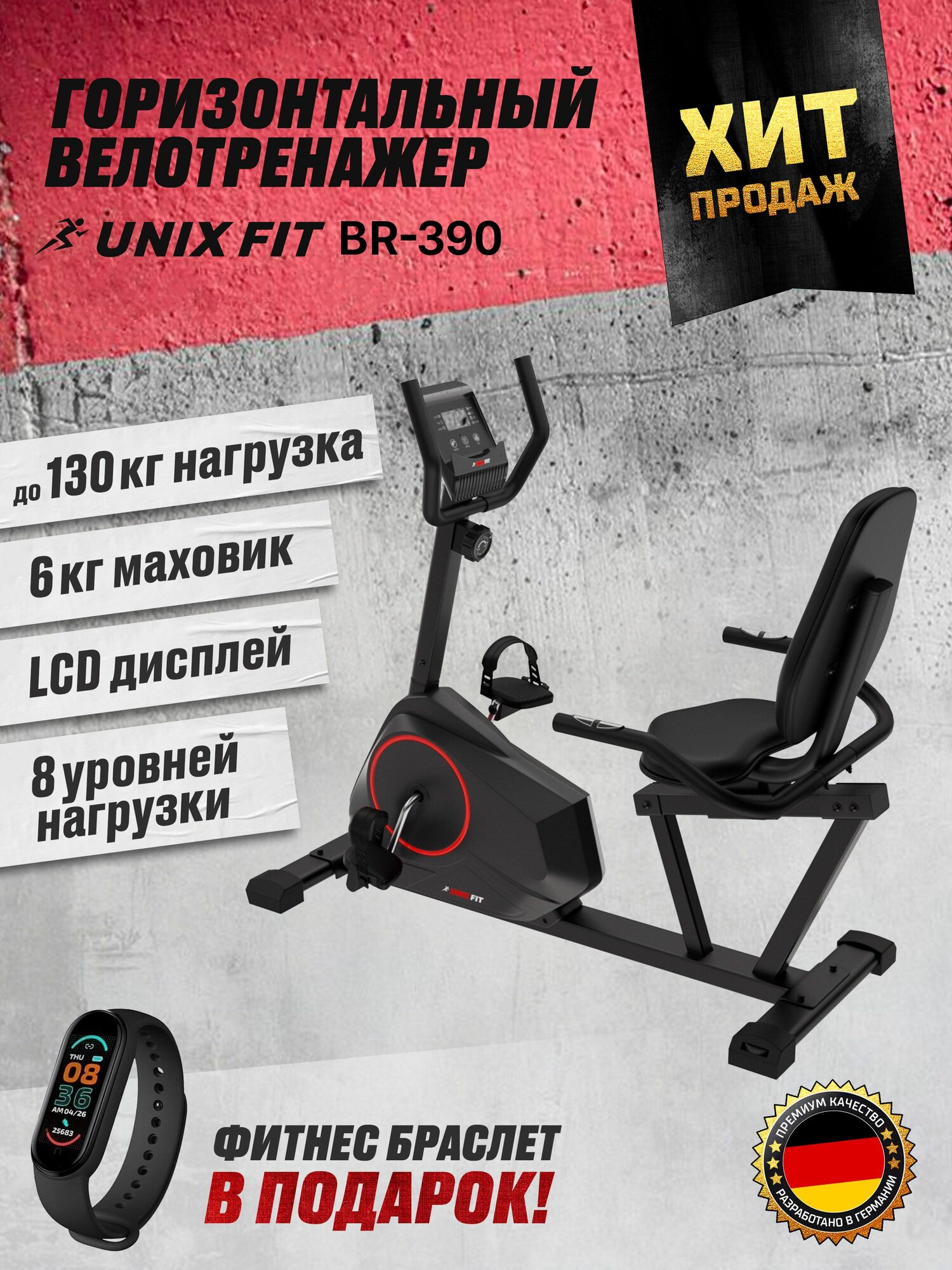 Магнитный велотренажер UNIXFIT BR-390 домашний, 8 уровней нагрузки, горизонтальный, маховик 6 кг