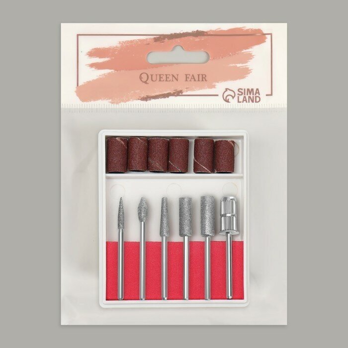 Queen fair Фрезы с алмазным напылением, с насадками для маникюра, в органайзере, 12 шт