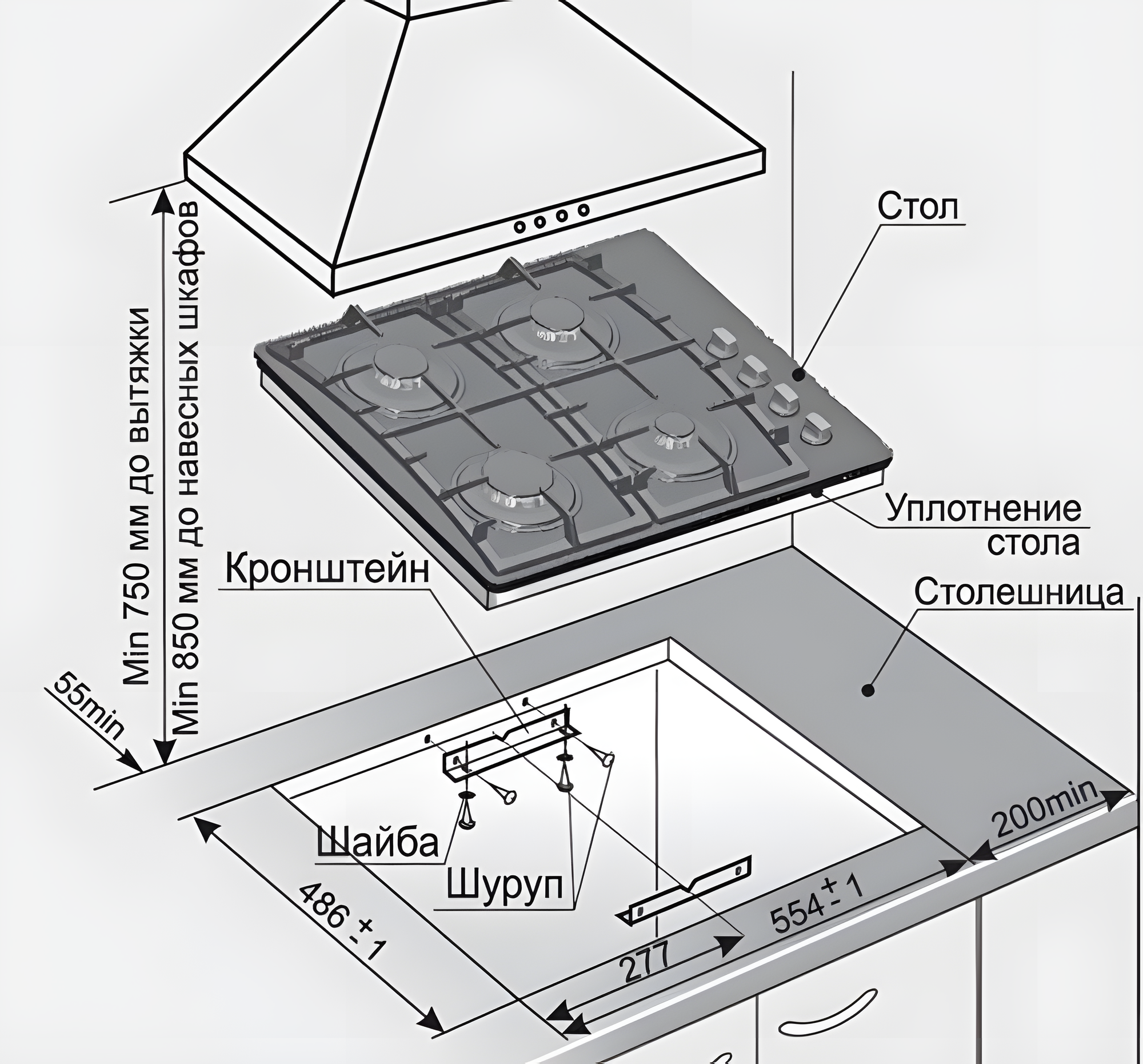 | Ширина для встраивания | 55 см |