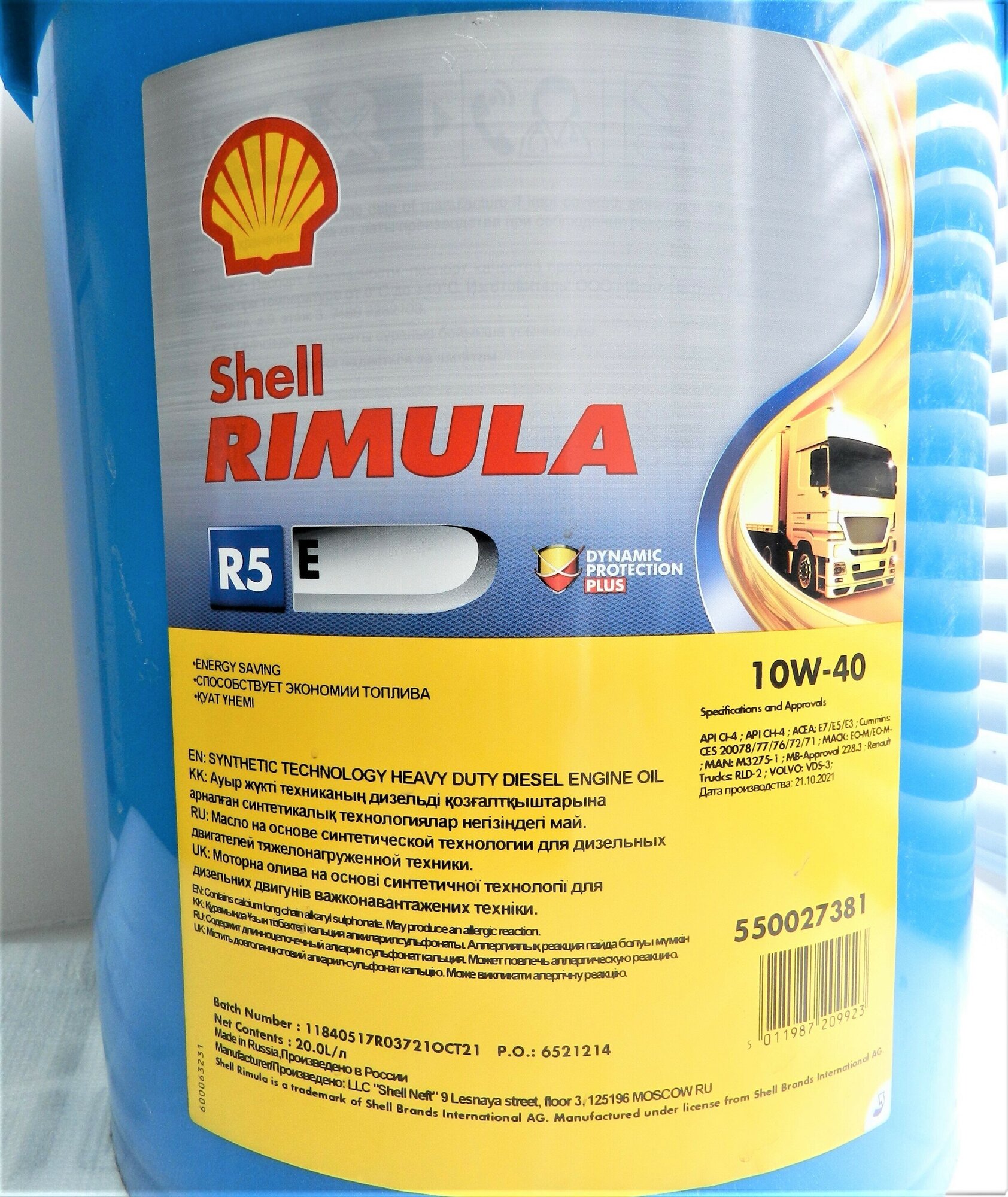 Полусинтетическое моторное масло SHELL Rimula R5 E 10W-40, 20 л, 1 шт.
