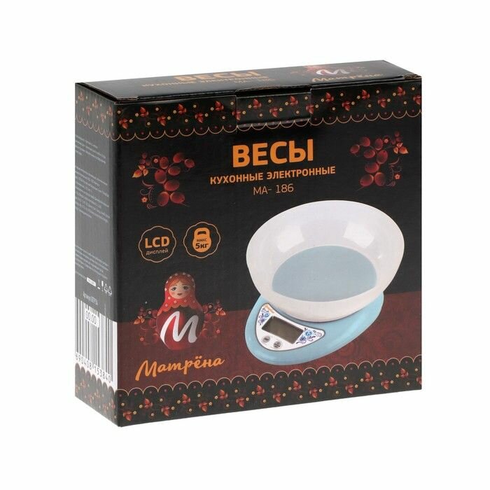 Матрёна Весы кухонные матрёна МА-186, электронные, до 5 кг, голубые