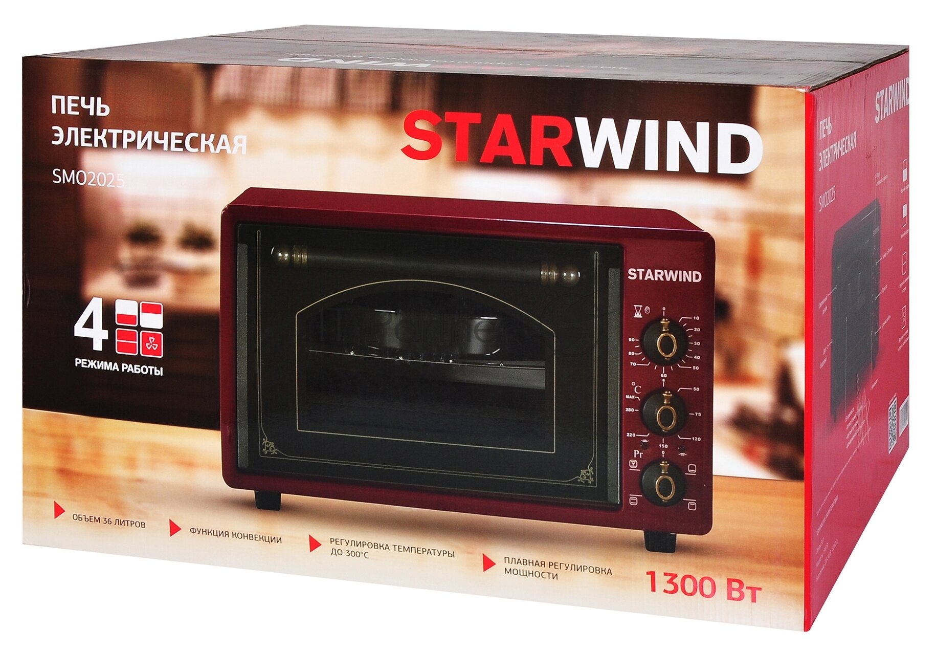 Мини-печь Starwind SMO2025 36л. 1300Вт бордовый