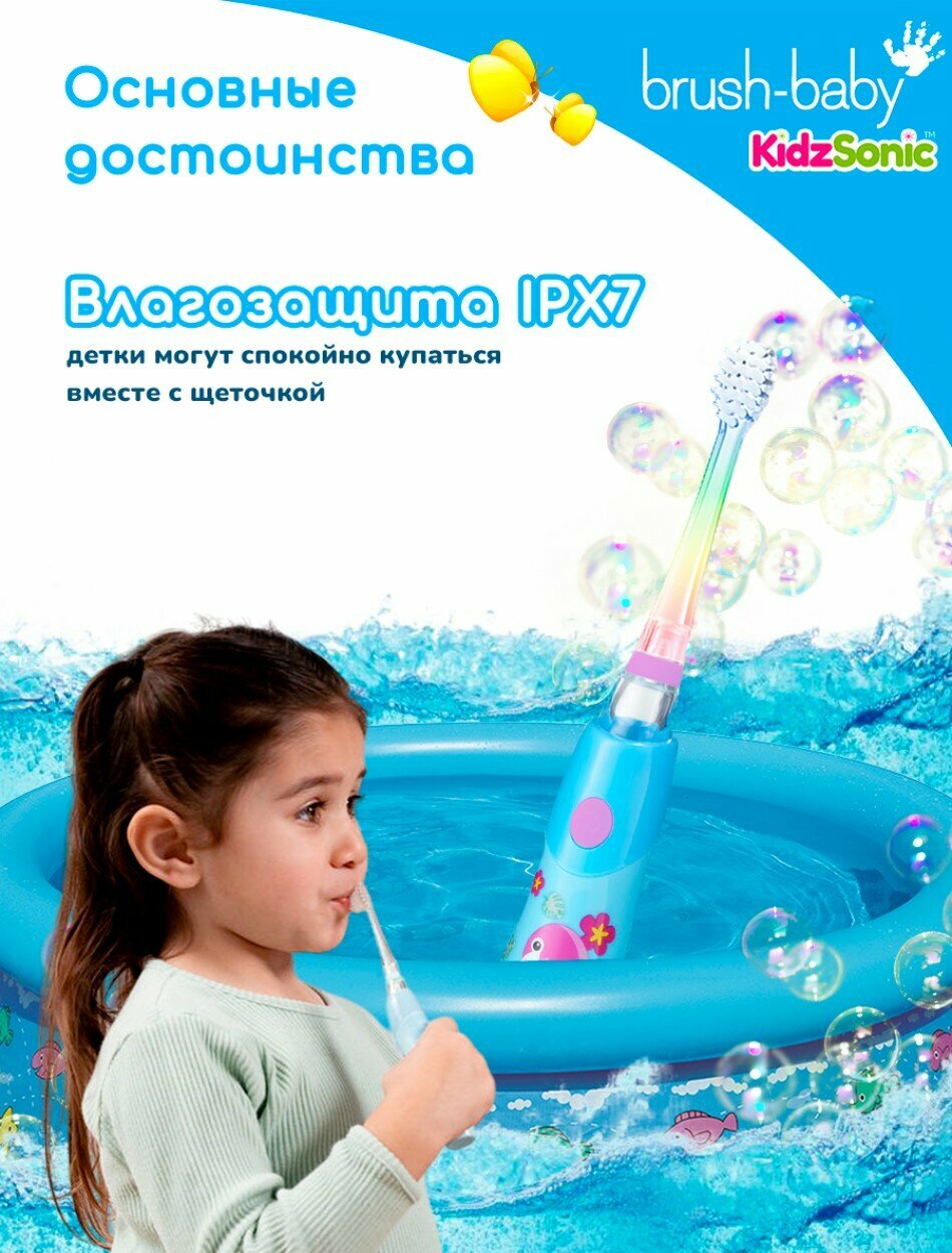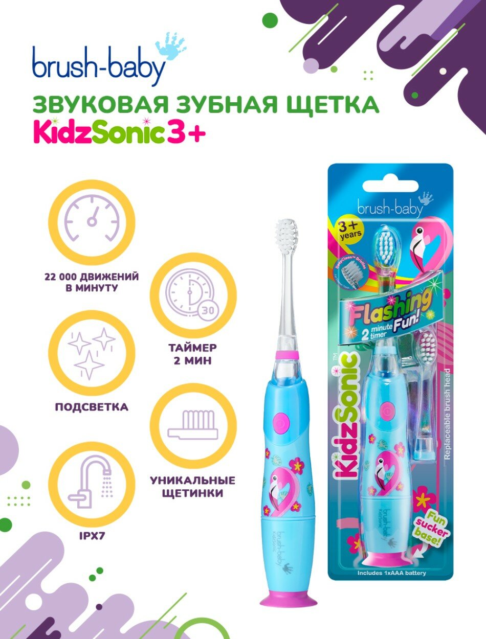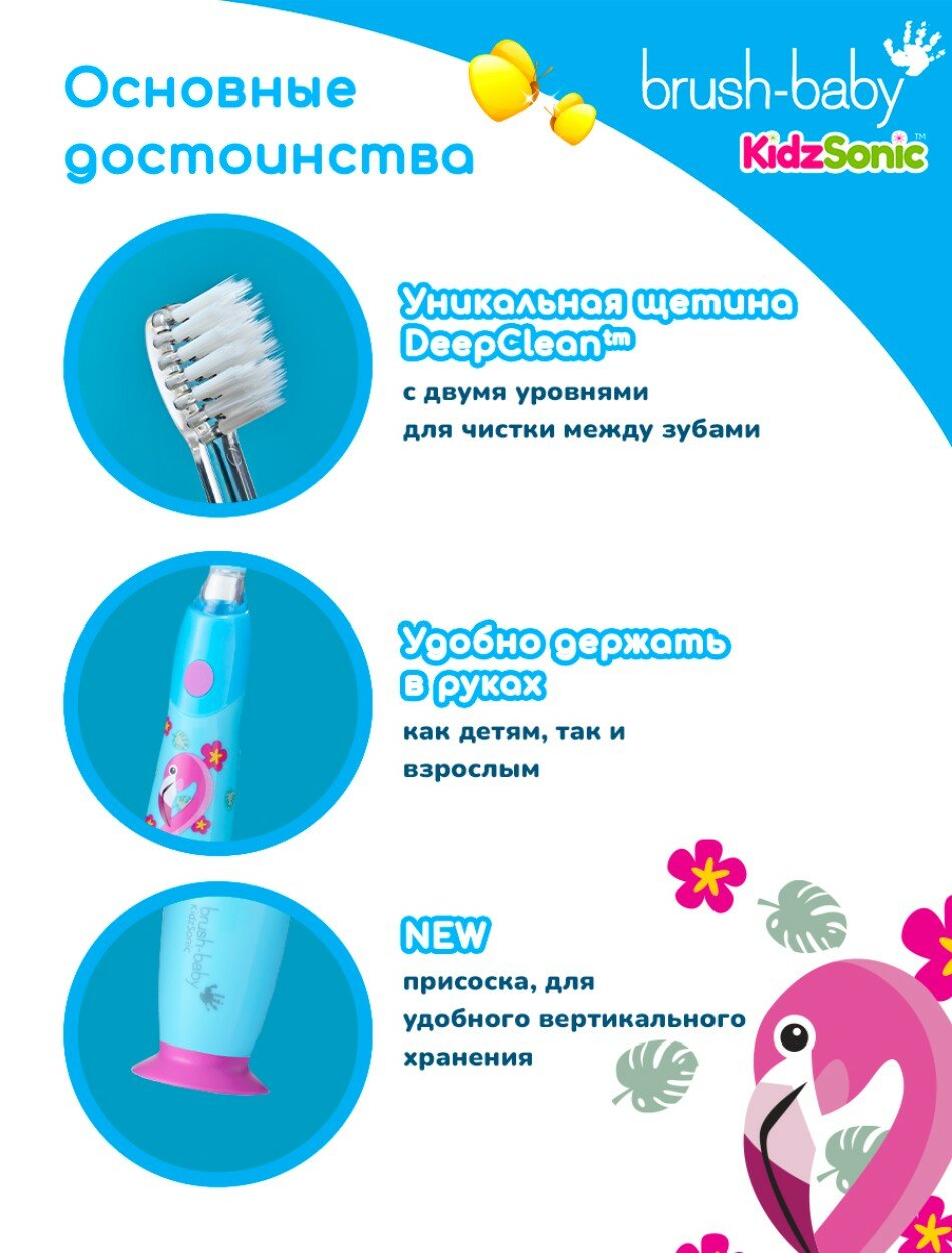 Brush-Baby KidzSonic звуковая зубная щетка Фламинго от 3 лет интересное: