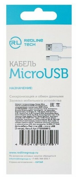 СохранитьКабель USB 2.0 - MicroUSB, М/М, 2 м, Red Line, бел, УТ000009512 1636187 интересное: