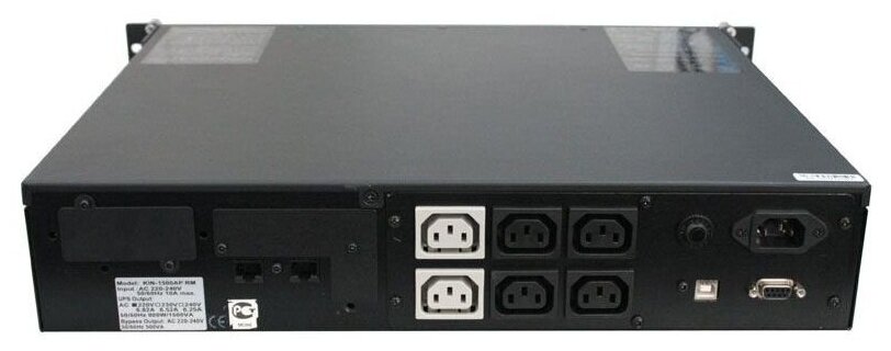 | Плюсы: | много компьютерных разъёмов - 4 с батарейным питанием, мощность 960 Вт, холодный старт, есть возможность подключить дополнительные батареи, устанавливается в стойку, размер 2U. |