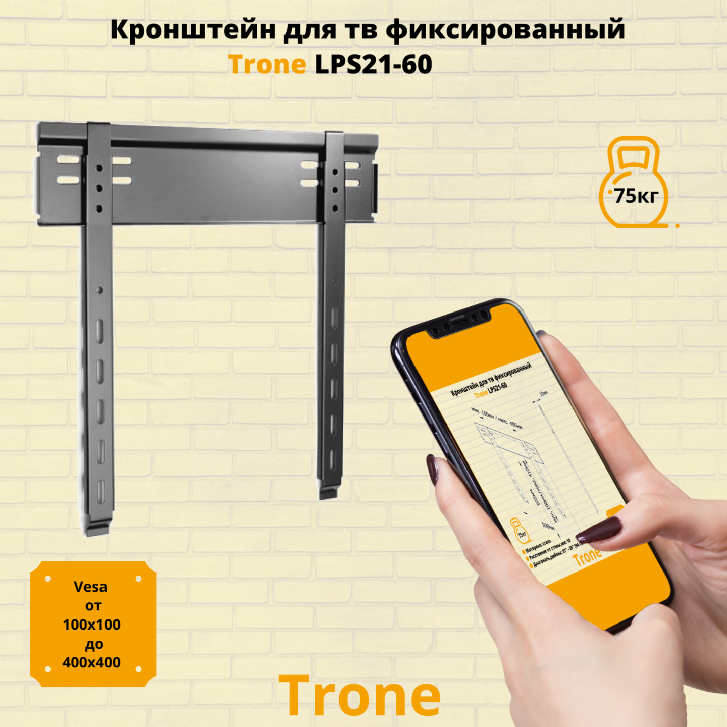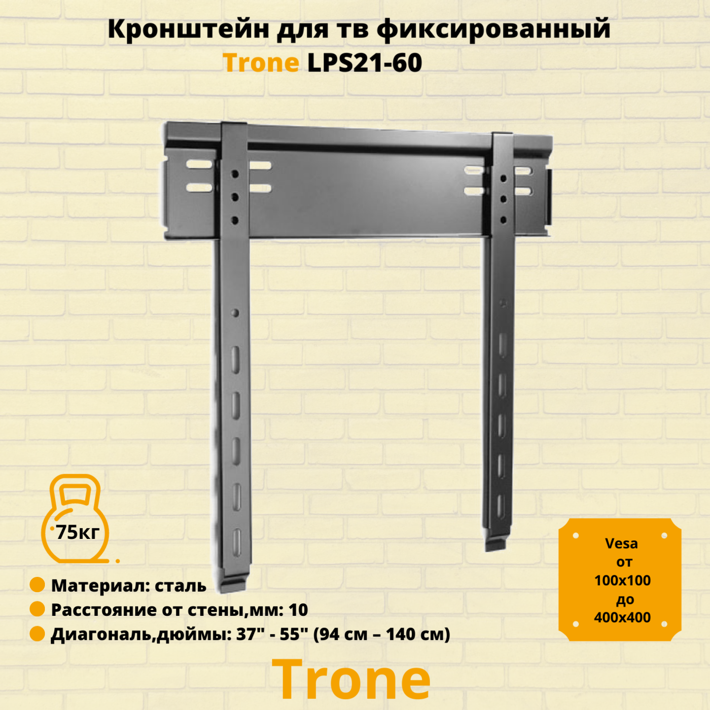 Кронштейн для телевизора Trone LPS 21-60 на стену до 75кг 37..60 дюймов VESA 100-400-410мм чёрный