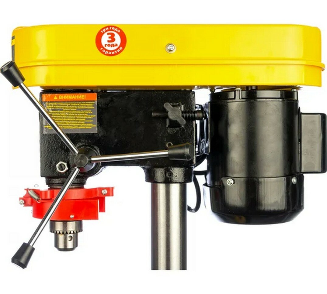 | Минусы: | 1) Небольшой люфт пиноли - устраняется. 2) Чуть продавливается при нажатии рабочий стол, который можно выставлять по высоте - также легко устраняется. Я это решил так: на основании есть заводские отверстия, туда можно легко поставить болт на 10 или 12 и гайкой длинной сделать упор в столик. Кто то в центре просверливает отверстие и туда ставит болт упор. В общем решений разных много. |