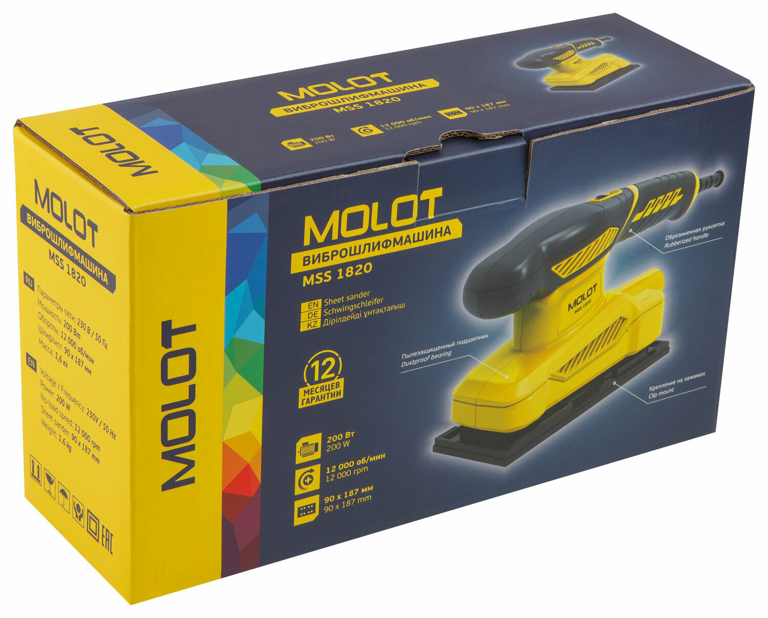 Виброшлифмашина MOLOT MSS 1820 в кор. 200 Вт, 90 х 187 мм, 12000 об/мин (Колебания (число), кол/мин: 12000.) (MSS182000025)