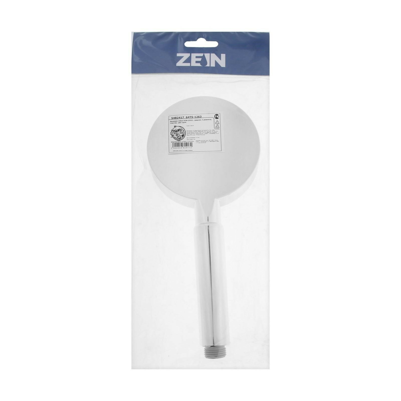 Душевая лейка ZEIN Z0113, 1 режим, пластик, цвет хром 5482419