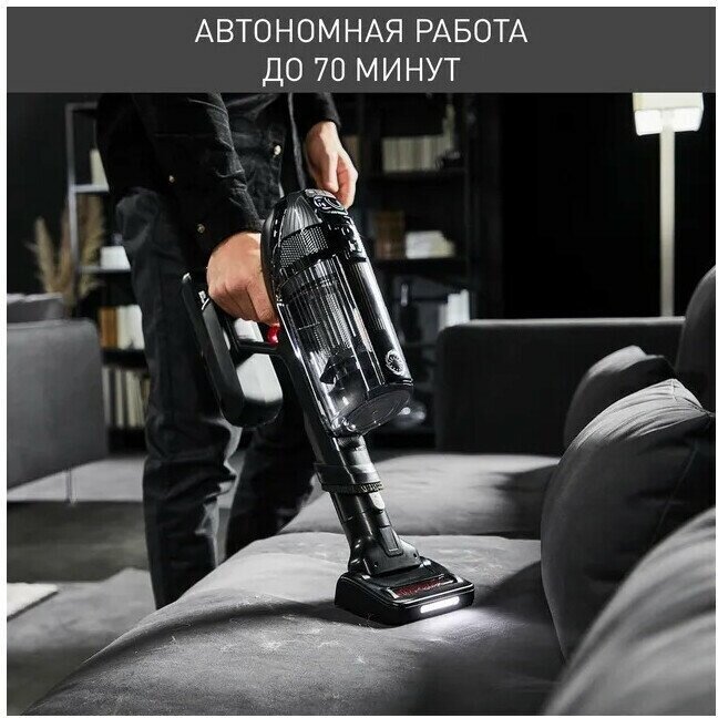 | Плюсы: | Мобильность, не нужно заморачиваться с проводом. Количество насадок на все случаи жизни/уборки :)). Щетки разбираются и чистятся в пару манипуляций. Мощность всасывания на максимуме 200Вт, вне всяких похвал для беспроводного пылесоса. Шерсть от кошаков (у меня их 5 голов, 2 из которых сибиряки и 3 короткошерстные, породы каширские-дворовые) с ковровых покрытий удаляет и на "Эко+". Универсальность - для авто и квартиры, зачет. |