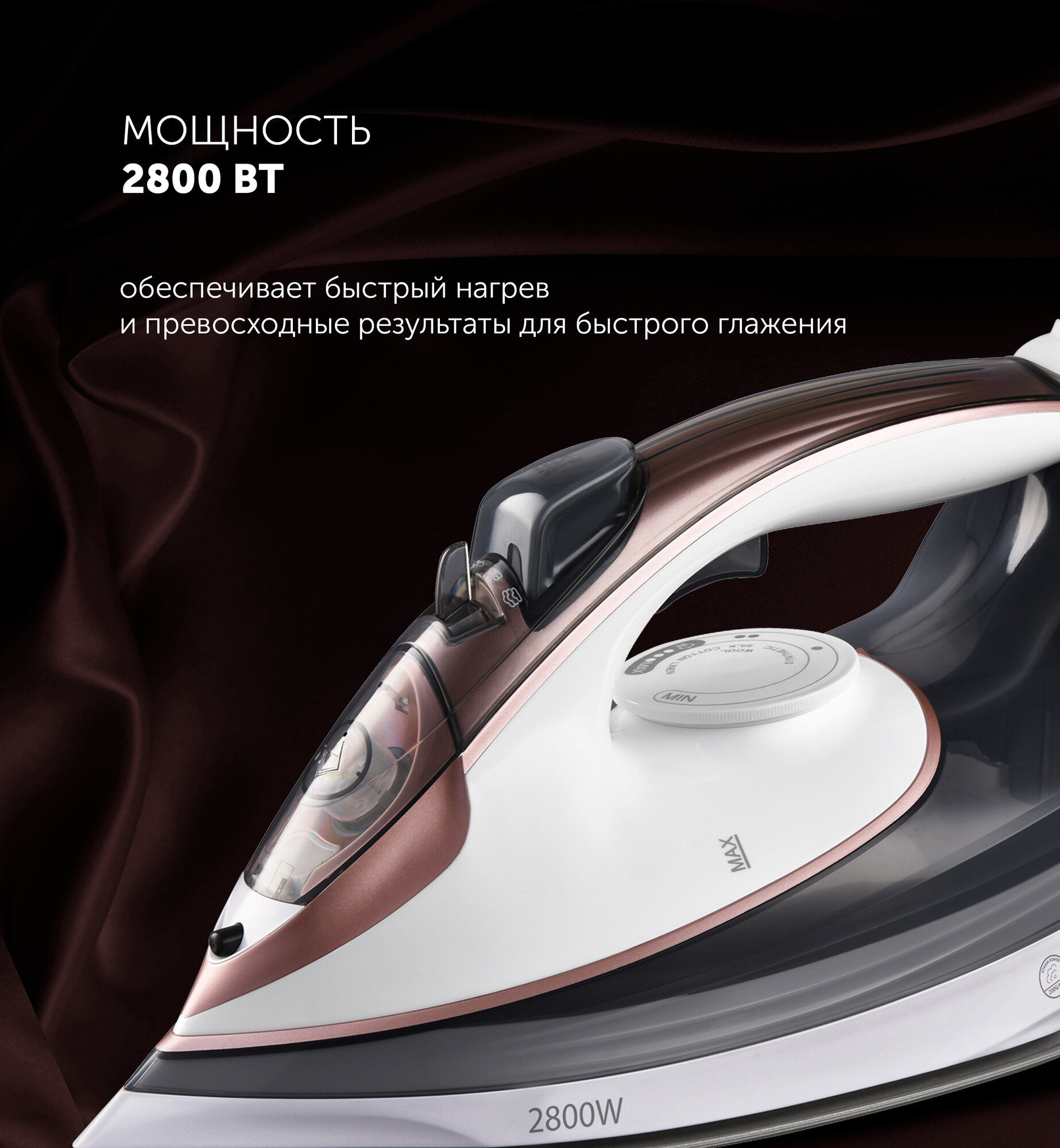 | Плюсы: | Отлично скользит по ткани, Мощный паровой удак, Шнур в 3 метра |