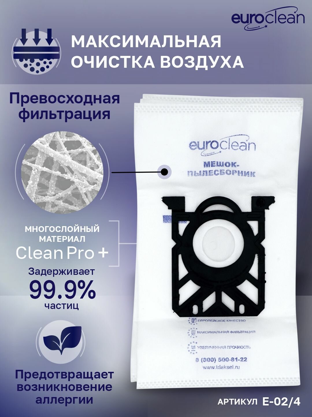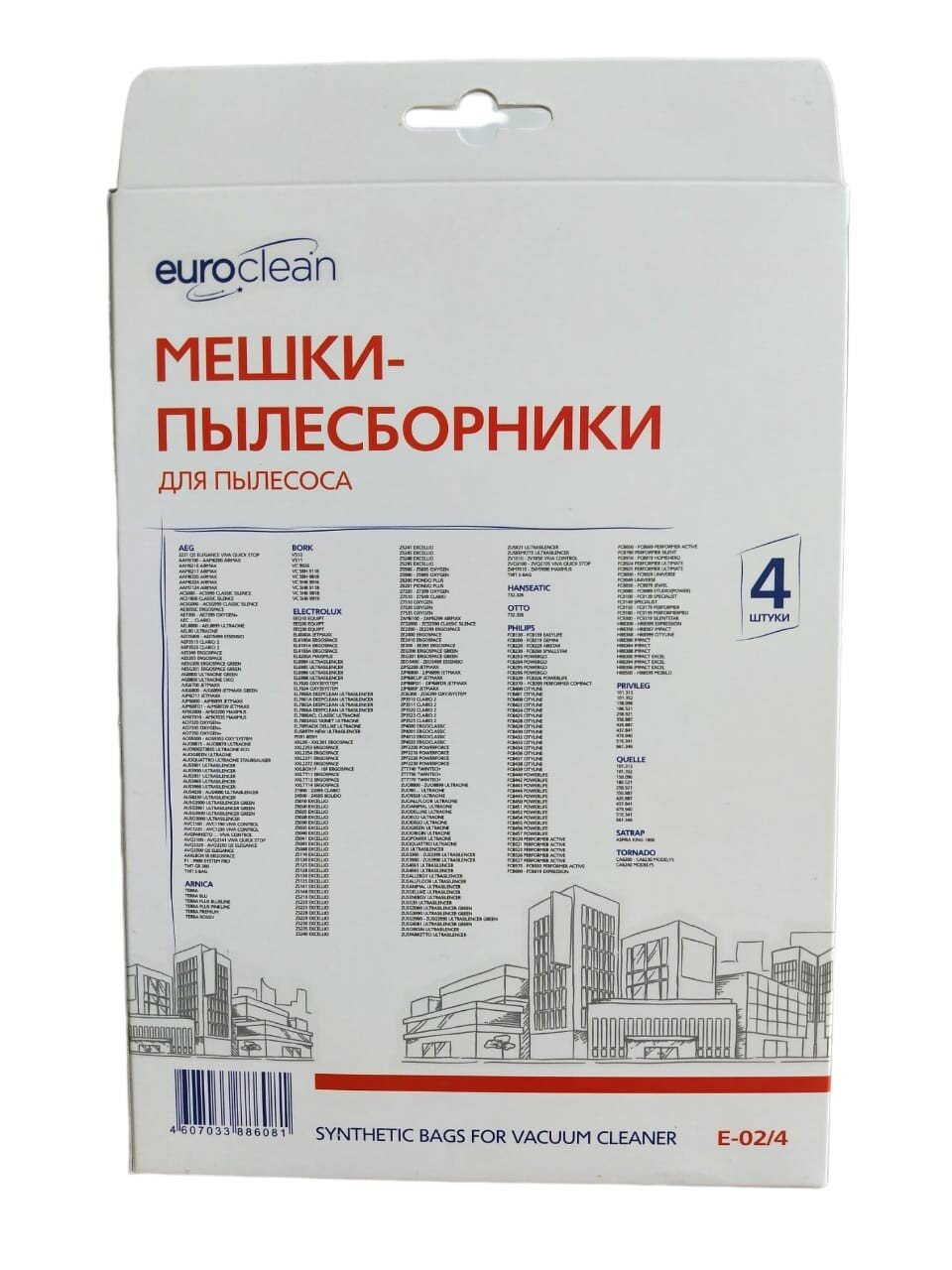 Euroclean E-02/4 Мешки для пылесоса ELECTROLUX одноразовые 4 шт. синтетические многослойные повышенной фильтрации подходят: AEG BORK PHILIPS ZANUSSI / пылесборник