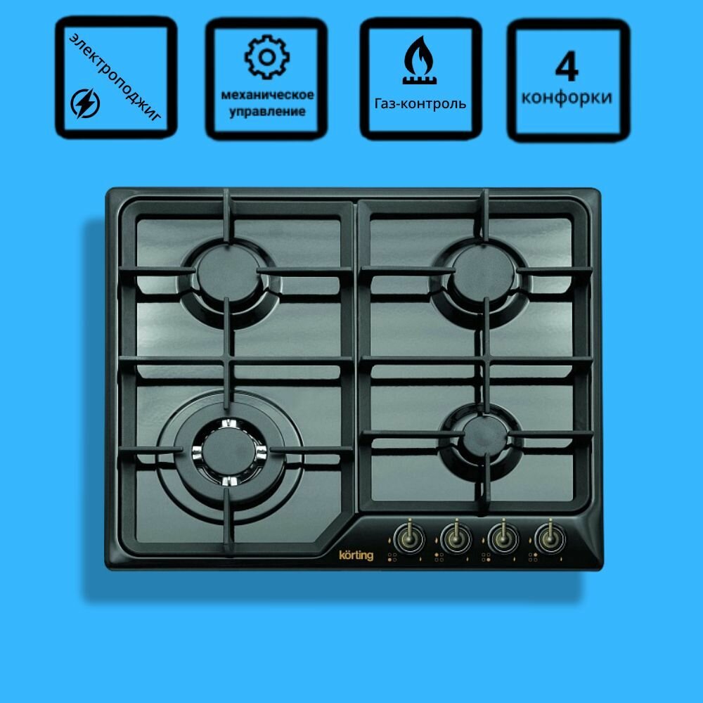 Газовая варочная панель Korting HG 630 CTSN, черный