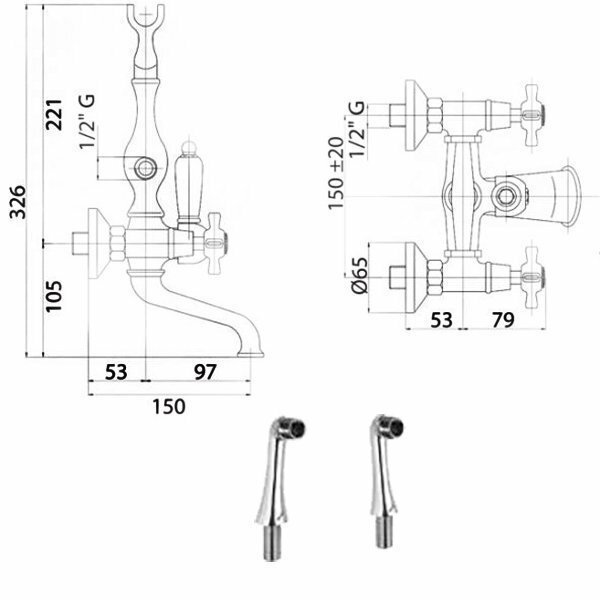 Смеситель Cezares Lord LORD-PBV-01-Bi для ванны с душем
