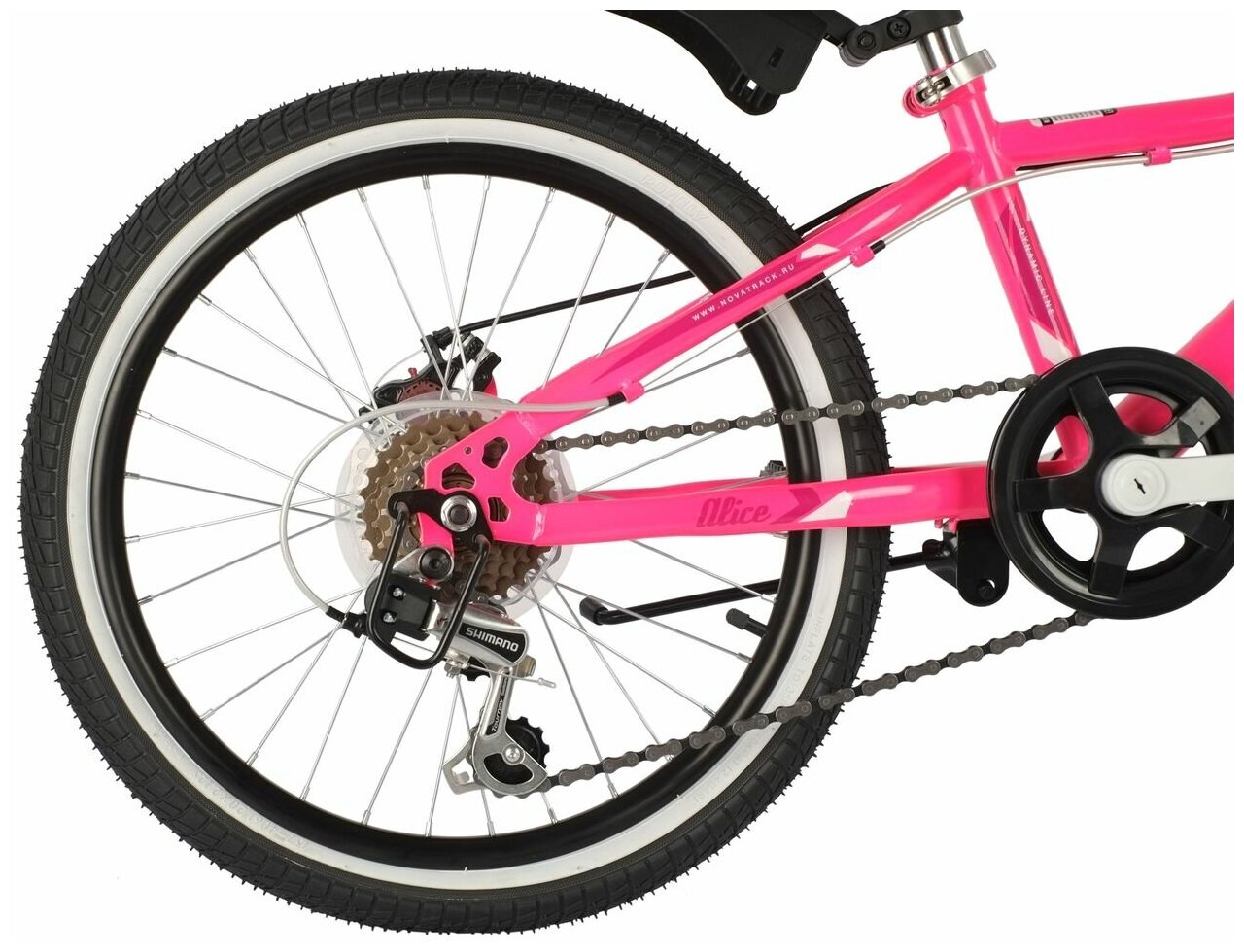 Велосипед детский NOVATRACK 20" 20SH6D.ALICE.PN21 розовый, стальная рама, 6 скор., Shimano TY21/Mic