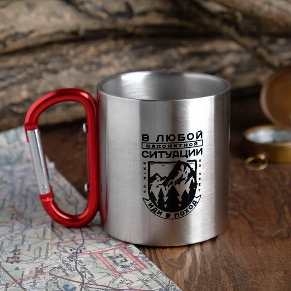 Кружка с карабином "Иди в поход", 180 мл интересное: