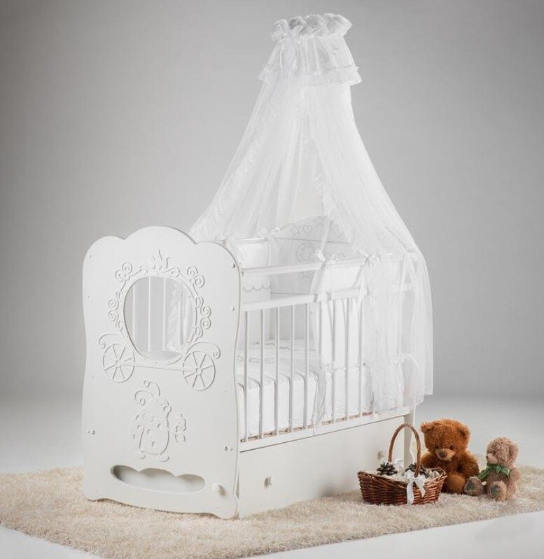 СохранитьОстровок уюта детская кроватка Карета с поперечным маятником и ящиком - белый интересное: