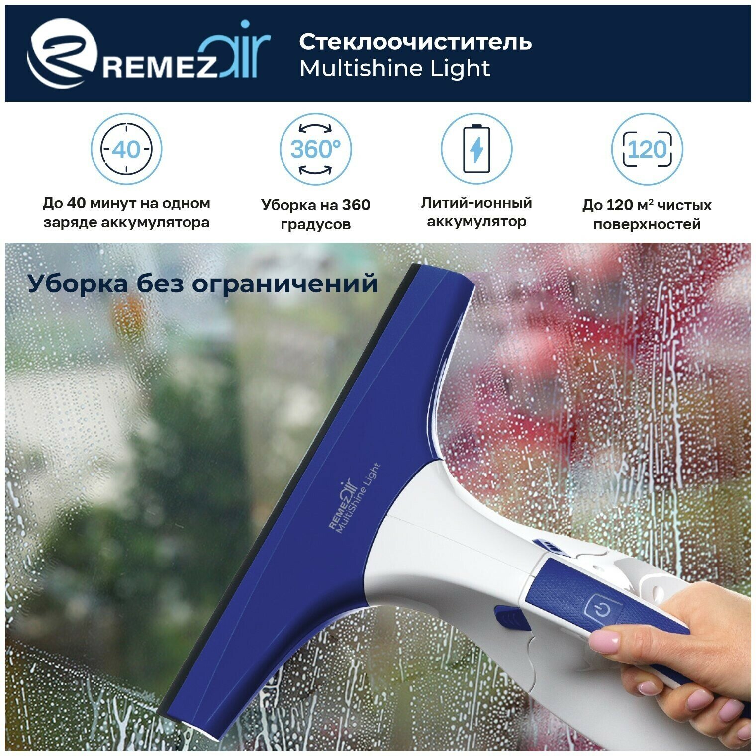 Стеклоочиститель REMEZAIR MultiShine Light RMGC-01, аккумуляторный
