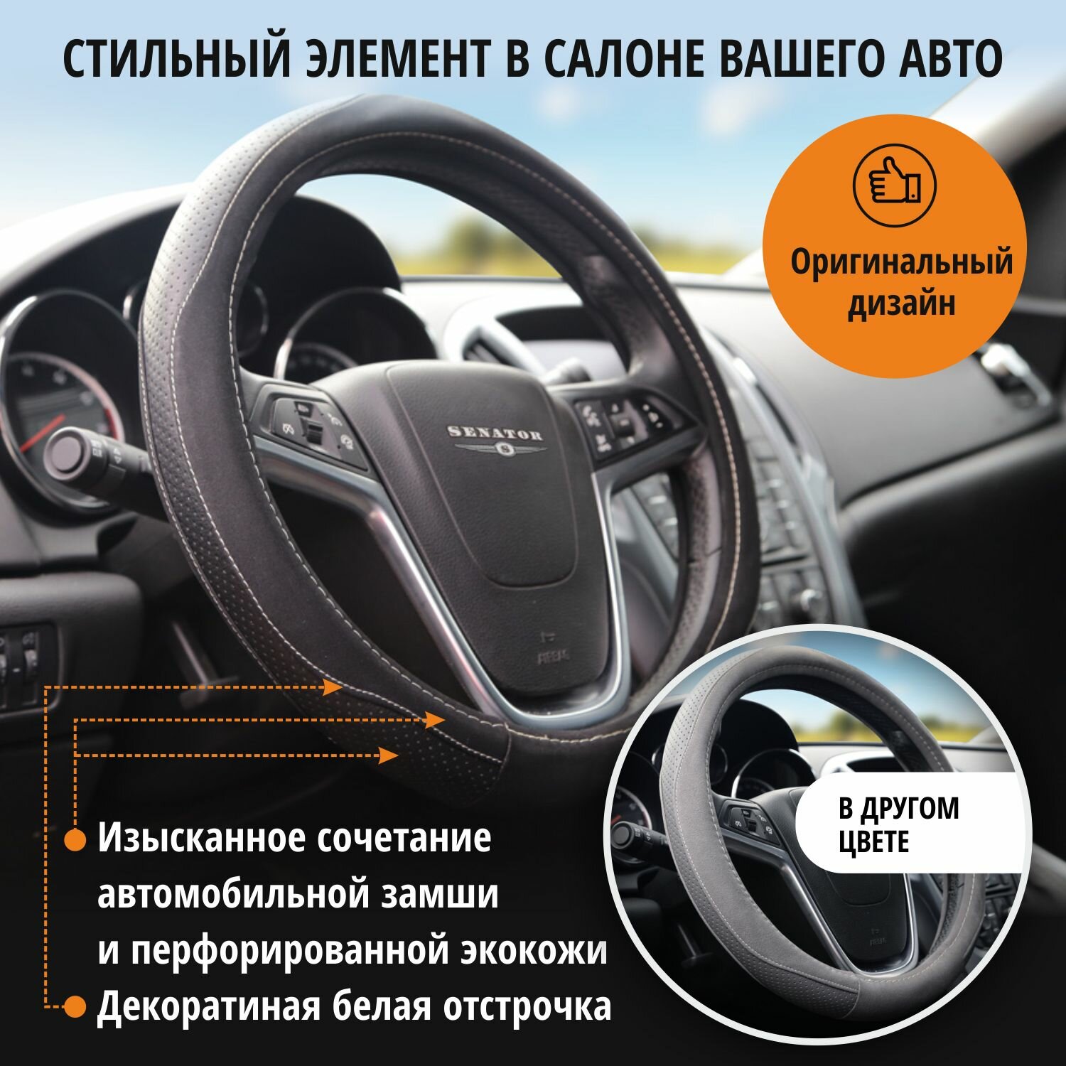 Оплетка на руль SENATOR Alaska, замшевая, "M", 38см
