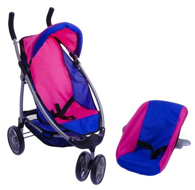 Коляска для кукол, с переноской, трёхколёсная, металлический каркас