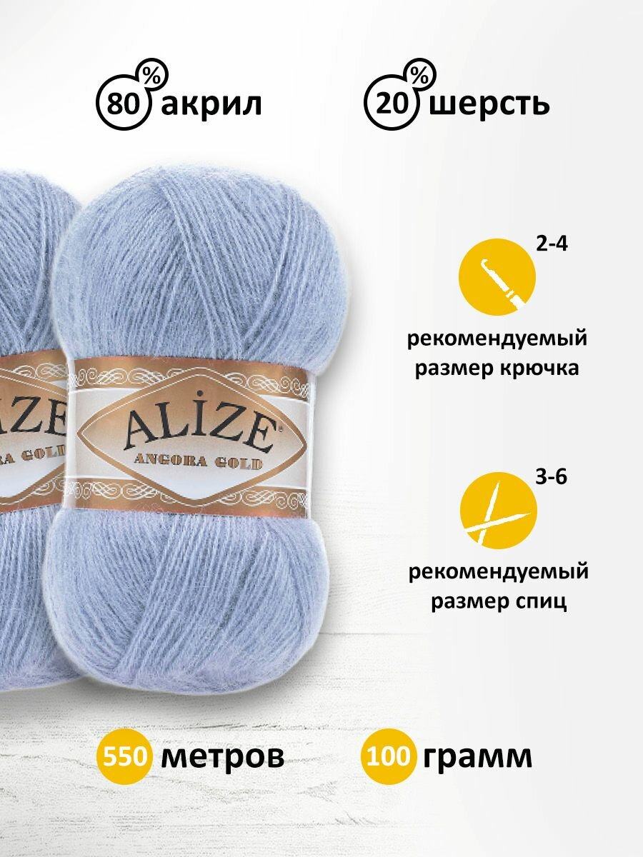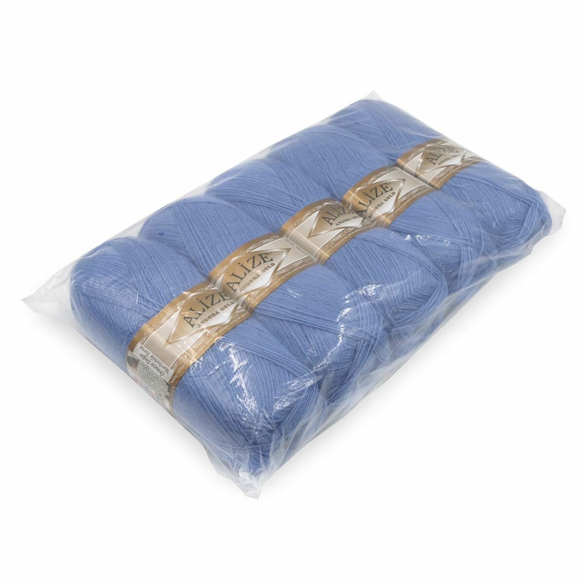 Пряжа ALIZE 'Angora Gold' 100гр. 550м (80% акрил, 20% шерсть) ТУ (40 голубой). В комплекте 5 штук.