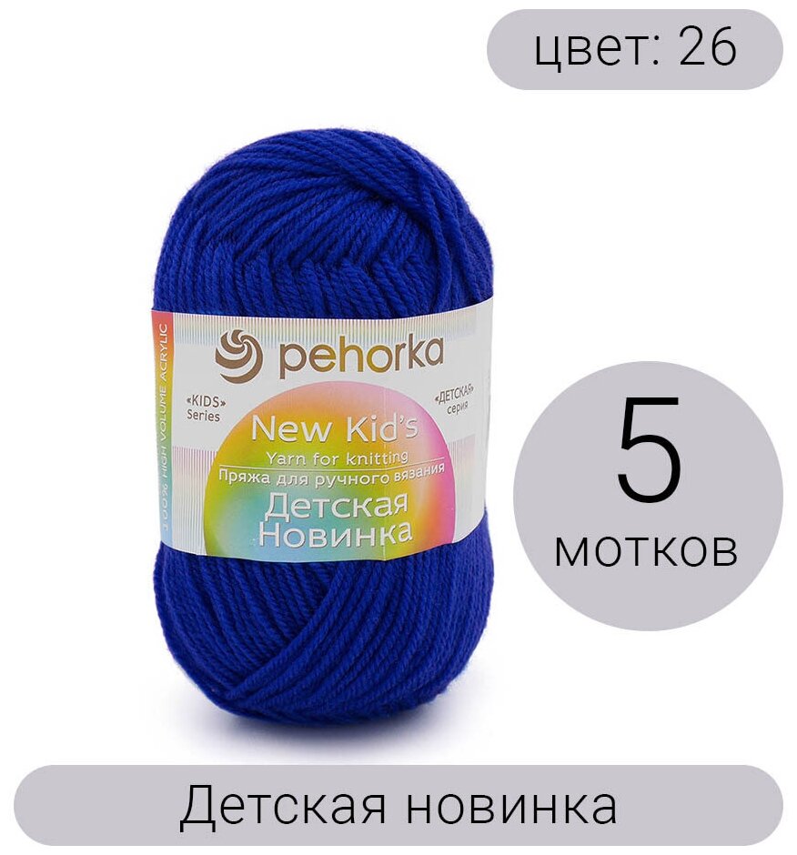 Пряжа Пехорка Детская новинка 26 василек 100% акрил высокообъемный 50г 200м 5шт