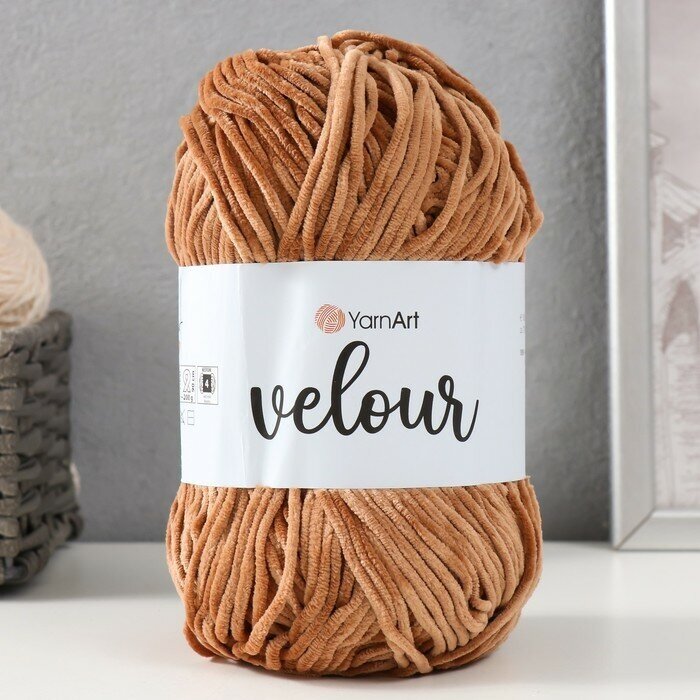 Пряжа YarnArt Velour Ярнарт Велюр Фантазийная велюровая, для игрушек, 849 темный беж, 100 г, 170 м, микрополиэстер, 1 шт