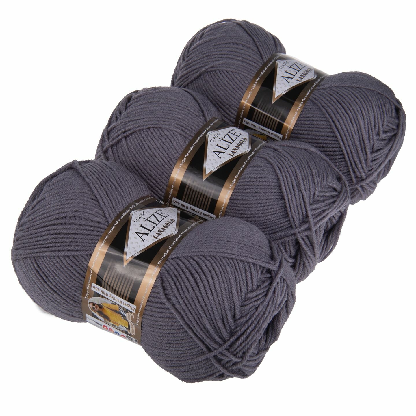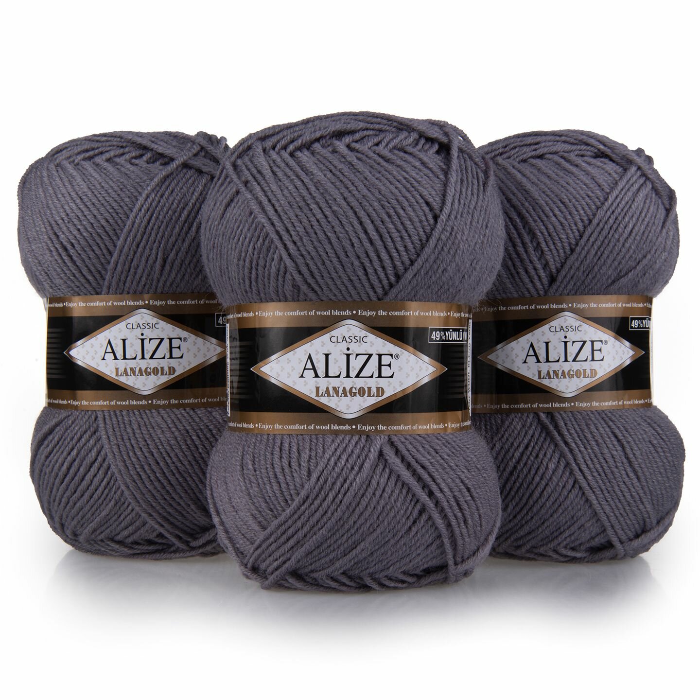 Купить Пряжа Alize Lanagold (Ализе Ланаголд) - 3 мотка 348 темно-серый 49% шерсть, 51% акрил 240м/100г