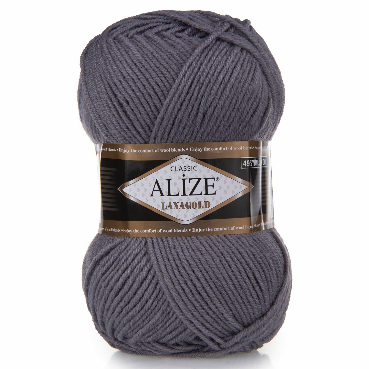 Пряжа Alize Lanagold (Ланаголд) цвет: темно-серый 348, 49% шерсть, 51% акрил 100г 240м 5шт