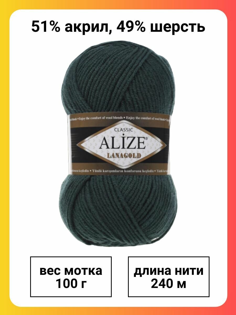 СохранитьПряжа ALIZE Lana Gold цвет 426 темно-зеленый черно-зеленый Лана Голд 1 упаковка 5 мотков по 100г по 240м, турецкая полушерсть, теплая, мягкая нить интересное: