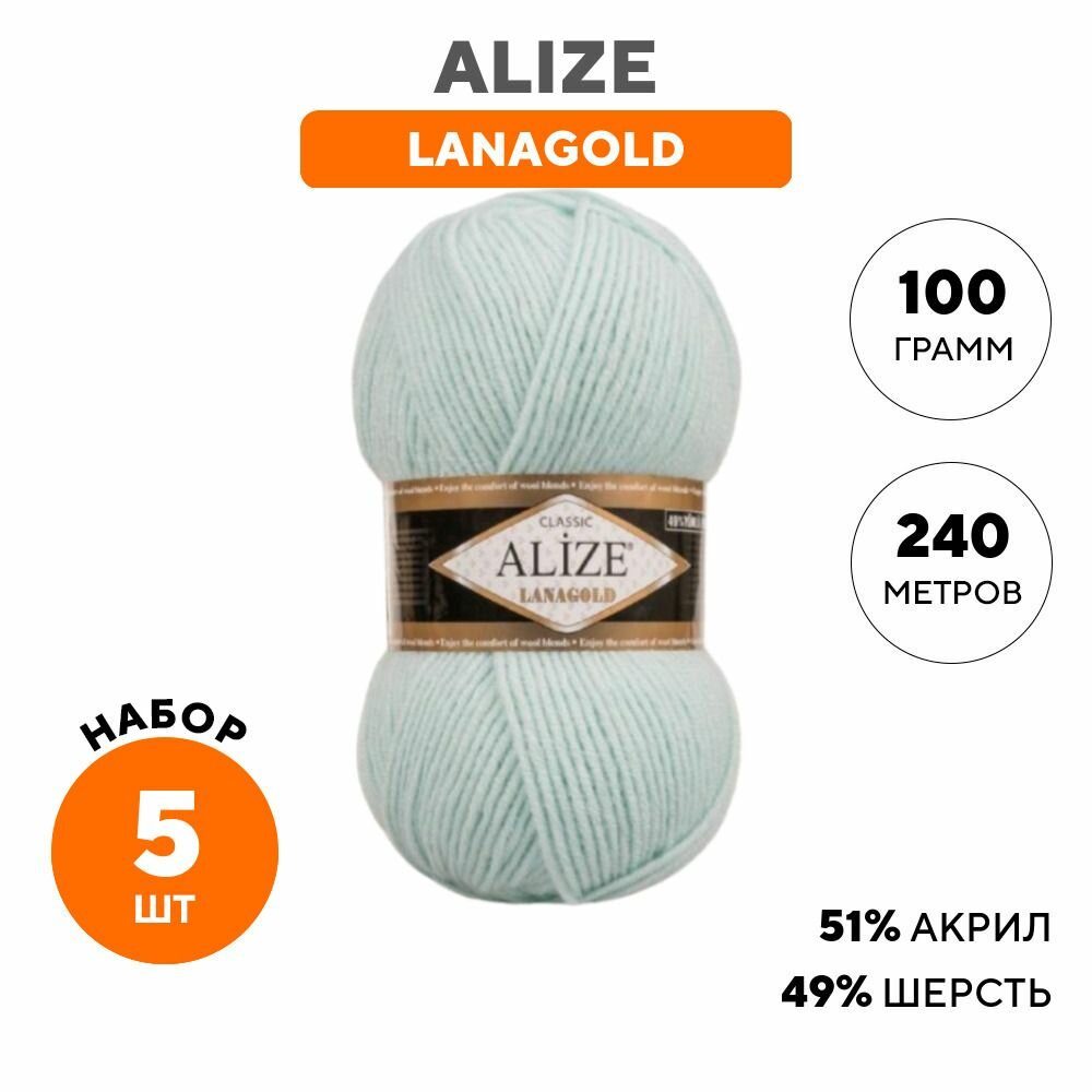 Купить Пряжа ALIZE Lana Gold цвет 522 мятный Лана Голд 1 упаковка 5 мотков по 100г по 240м, турецкая полушерсть, теплая, мягкая нить