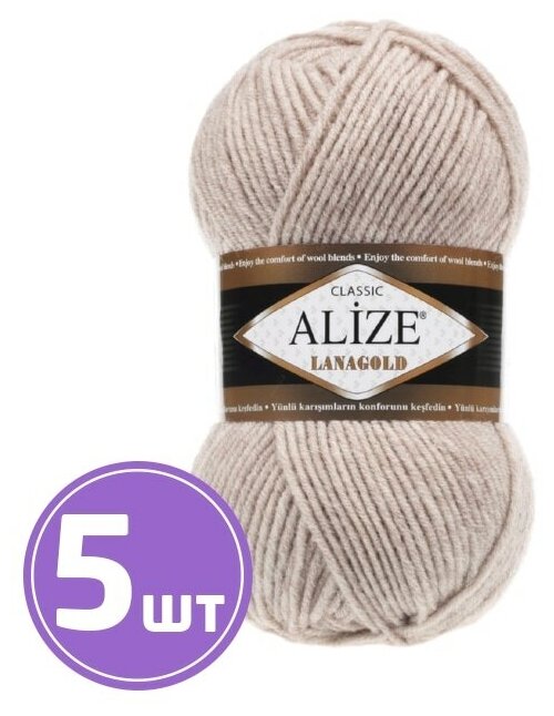 Пряжа Alize Lanagold (Ланаголд) цвет бежевый меланж 152, 49% шерсть, 51% акрил 100г 240м 5шт