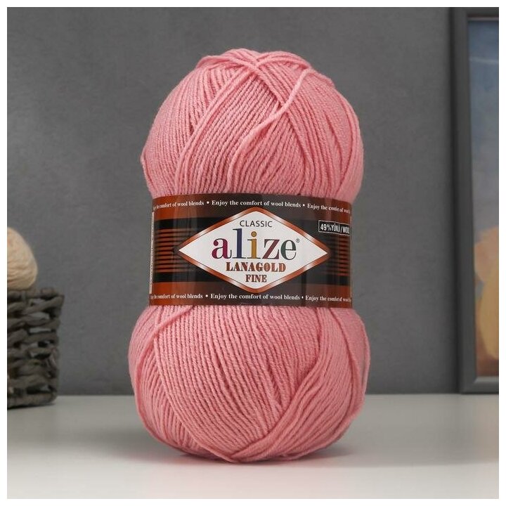 Пряжа Alize Lanagold Fine, 51% акрил / 49% шерсть, 100 гр/390 м, 1 моток, цвет 28 сухая роза