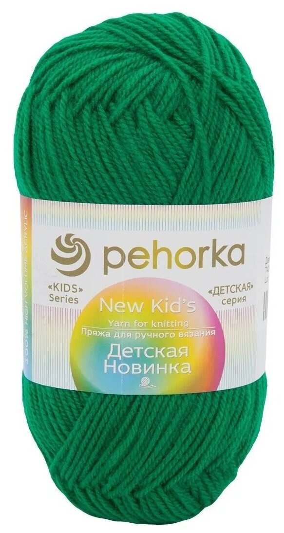Пряжа Пехорка Детская новинка цвет светлый изумруд 581, 100% акрил высокообъемный 50г 200м 10шт