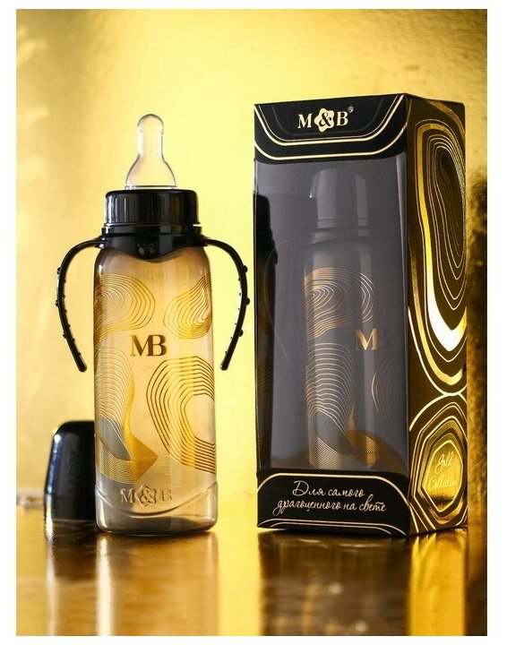 Купить Бутылочка для кормления «M&B» классическая, с ручками, 250 мл, Золотая коллекция