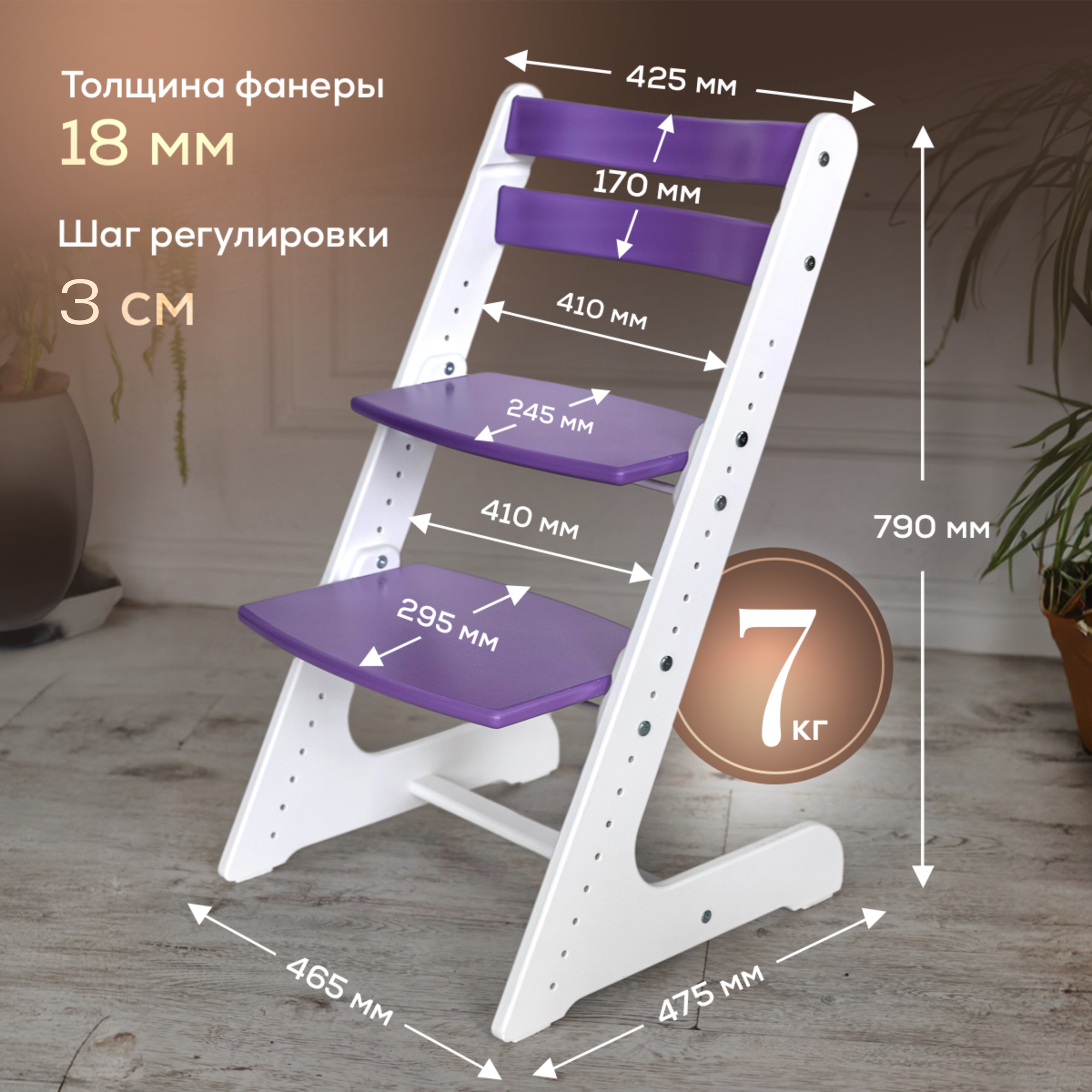 Купить Растущий стул для детей, детский стульчик для школьника Комфорт, цвет «Бело-сиреневый»