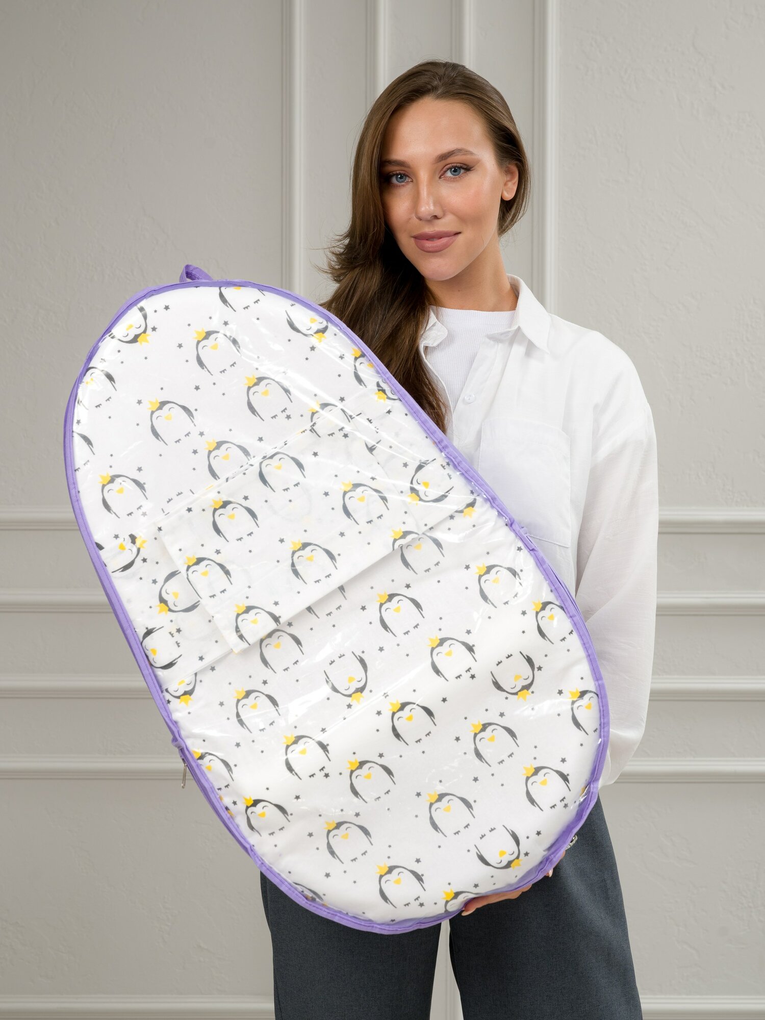 Купить Кокон для новорожденного с эффектом памяти BIO-TEXTILES "Baby-Люлька" 74х38х6/14 Пингвинчики