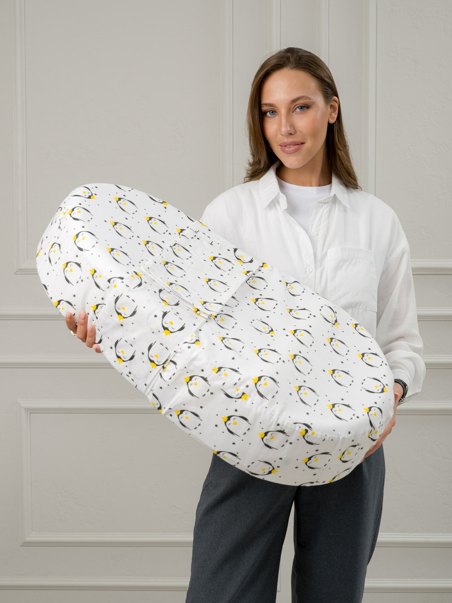 Кокон для новорожденного с эффектом памяти BIO-TEXTILES "Baby-Люлька" 74х38х6/14 Пингнинчики