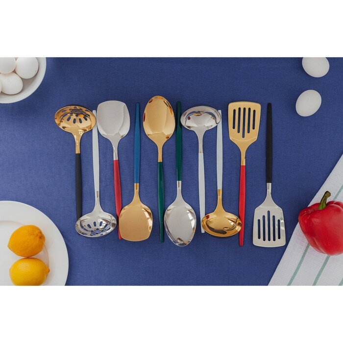 СохранитьMagistro Ложка гарнирная из нержавеющей стали Magistro «Грэйс», h=27,5 см, цвет ручки зелёный, цвет головы золотой интересное: