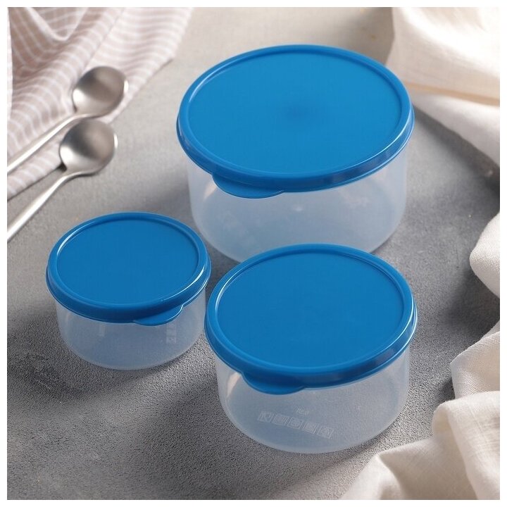 Набор контейнеров пищевых круглых Доляна, 3 шт: 150 мл, 300 мл, 500 мл, цвет синий