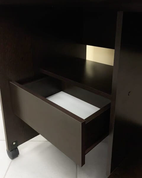 | Отзыв: | я брала данный столик, для размещения швейной машинки ( где системник) и оверлога ( на полке снизу). полка была высоковата- перенесла отверстия на 10 см ниже и теперь оверлог поместится. по указанным размерам сразу понимала, что перенести вниз эту полку придется?. еще выдвижной столик назад переместила на 5 см, а то он торчит из за стола- мне так не нравилось…