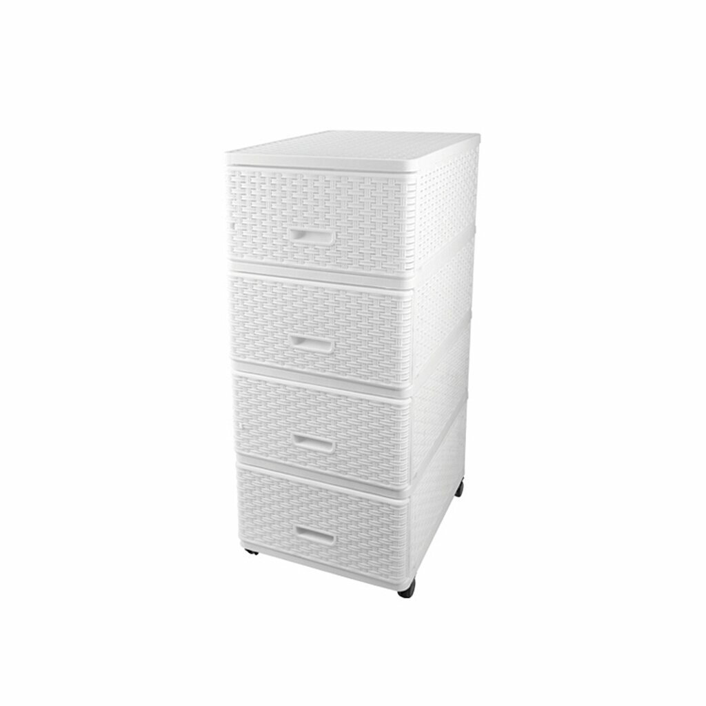 Купить Комод 4 ящика, Дюна, 40х50х98 см, белый, плетеный, 04054, Dunya Plastik