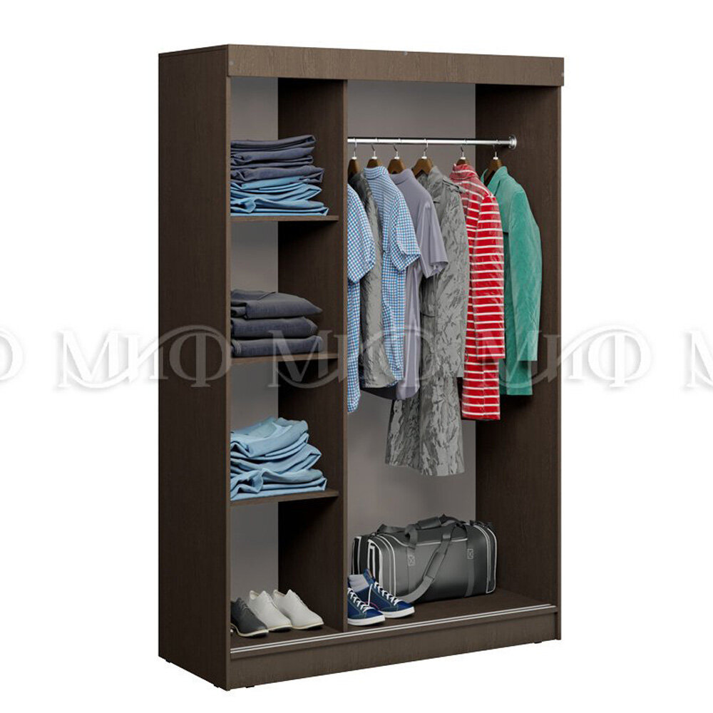 Шкаф-купе Миф Бася дуб беленый / венге Трехдверный 130х52х201.6 см интересное: