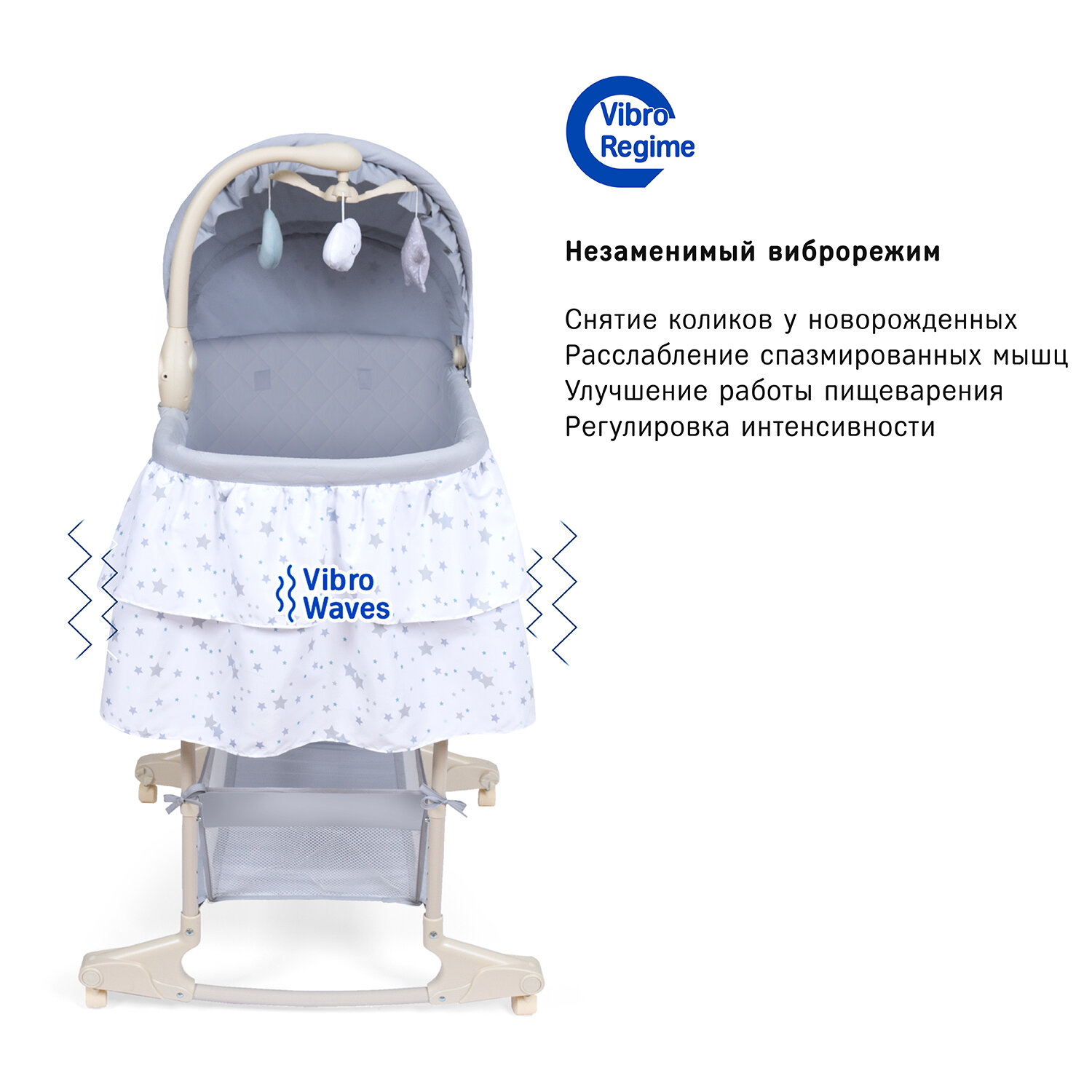 Все тканевые принадлежности отстегиваются. Виброрежим, который очень хорошо успокаивает и укачивает малыша |