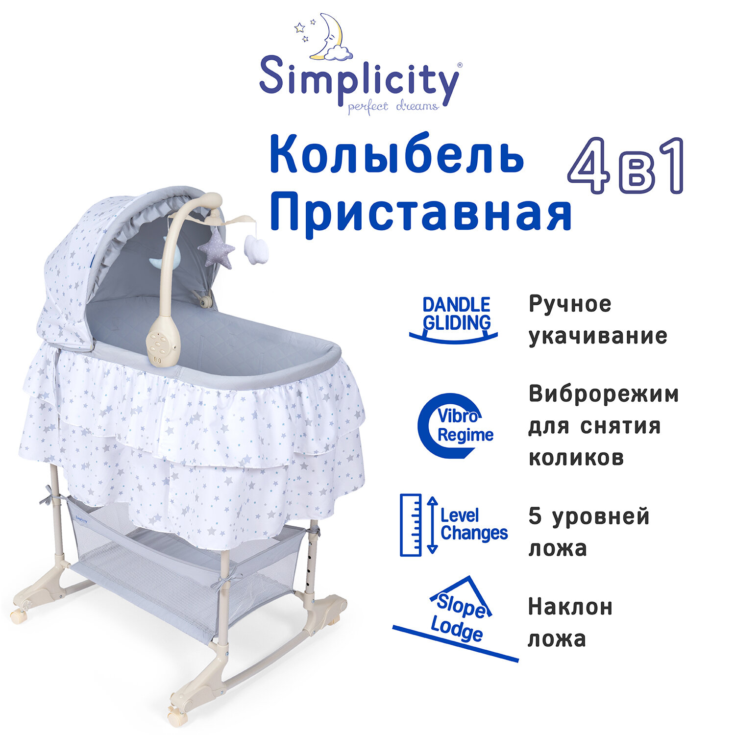 Колыбель детская Simplicity 4030 Classic с электронной системой укачивания (Gray Stars)