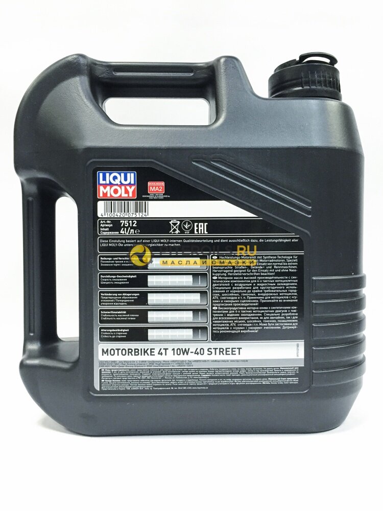 LIQUI MOLY 7512 Масло моторное Motorbike 4T Street 10W-40 (HC-синтетическое) 4L 1шт