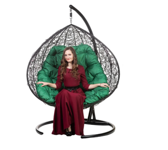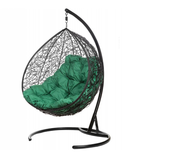 Двойное подвесное кресло "Gemini" promo black Зеленая подушка